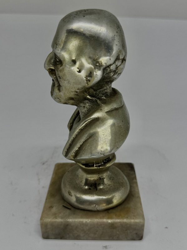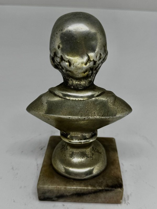 Seja o primeiro a avaliar “Antigo busto em metal prateado, sobre base em mármore”