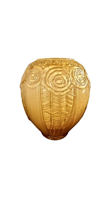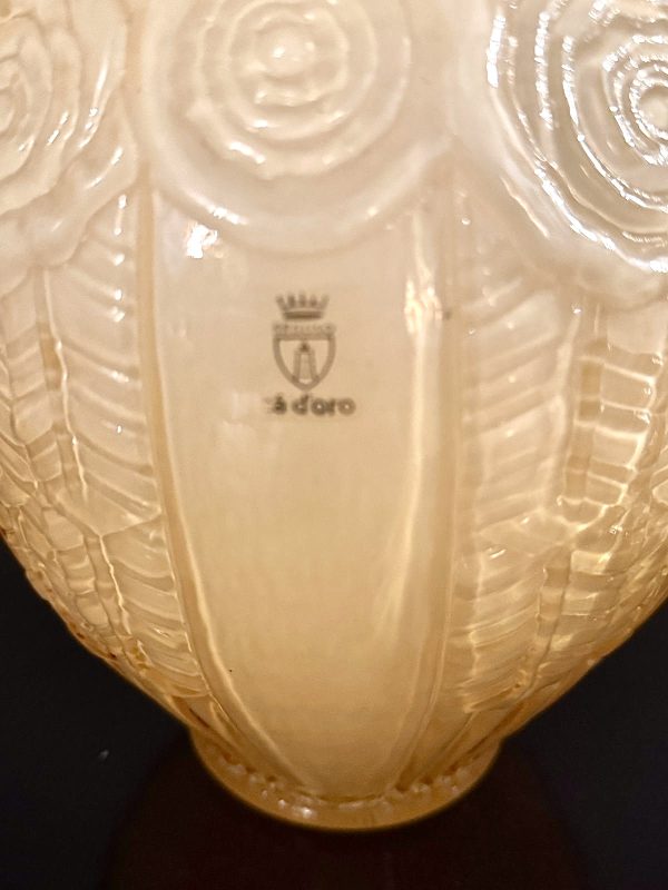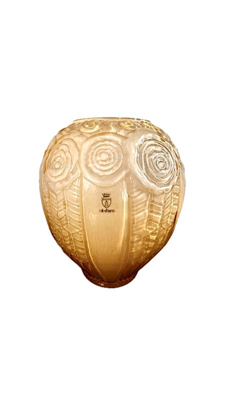 Belíssimo foreiro em vidro artístico, lapidado na cor âmbar, manufatura Seguso Ca’doro.