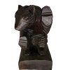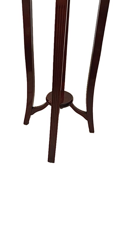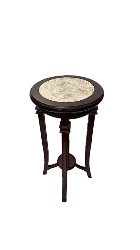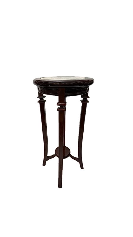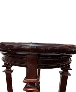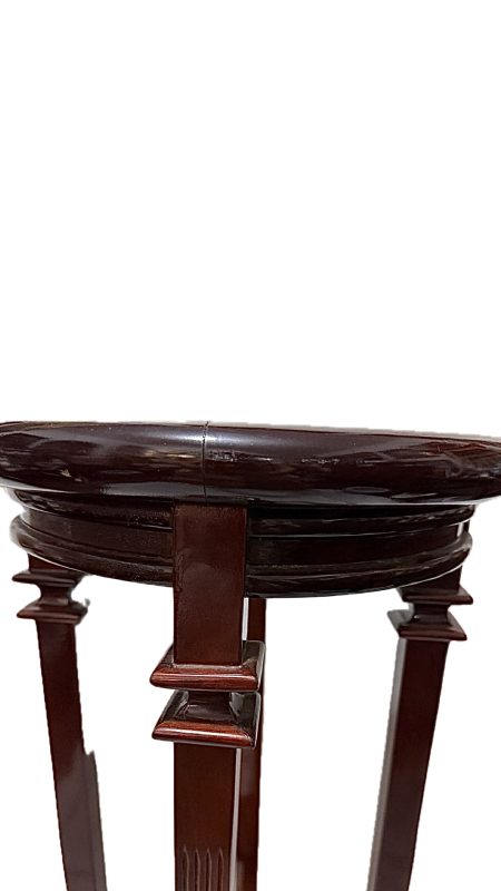 Coluna em madeira nobre entalhada com tampo circular com detalhes em mármore.