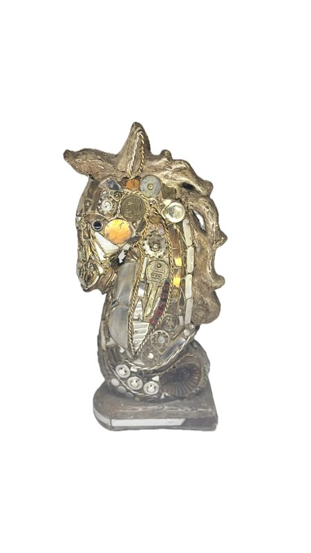 Artista não identificado- Escultura confeccionada com materiais de reciclagem diversos, representando “Cavalo”