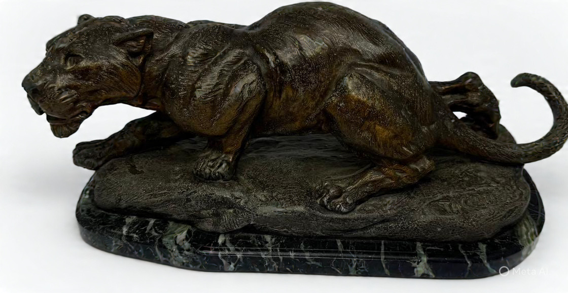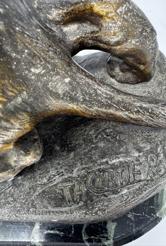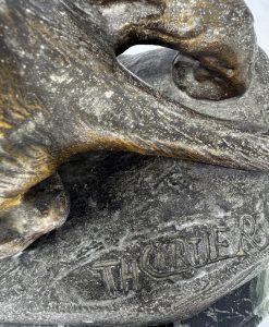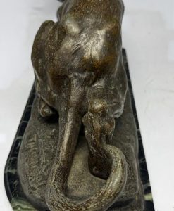 Thomás Cartier- Escultura em bronze patinado, sobre base em mármore, representando “Tigre”.