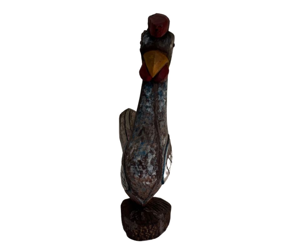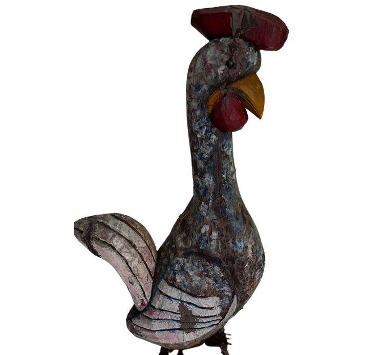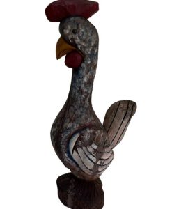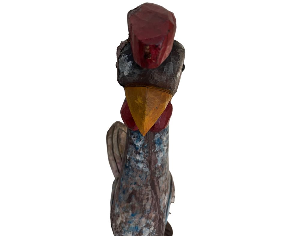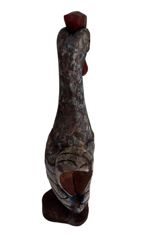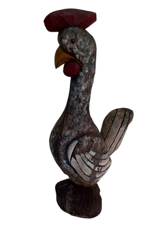 | Escultura em madeira nobre entalhada e policromada, representando Galo. Med: A: 54 L: 16 P: 28 cm. |