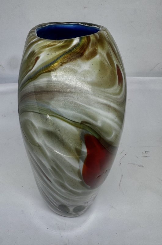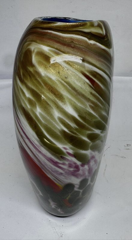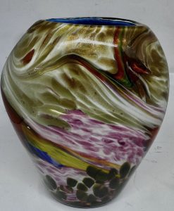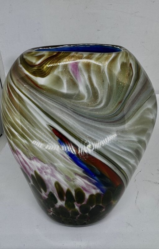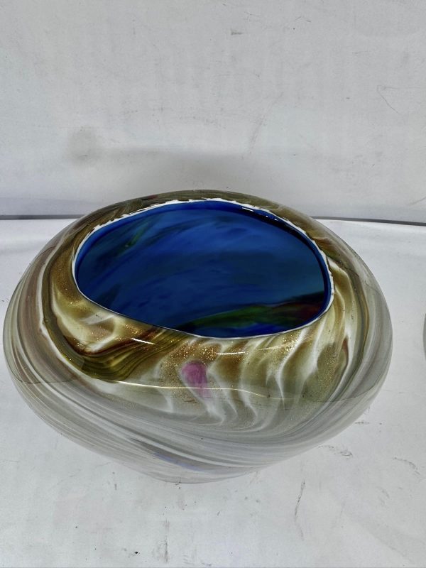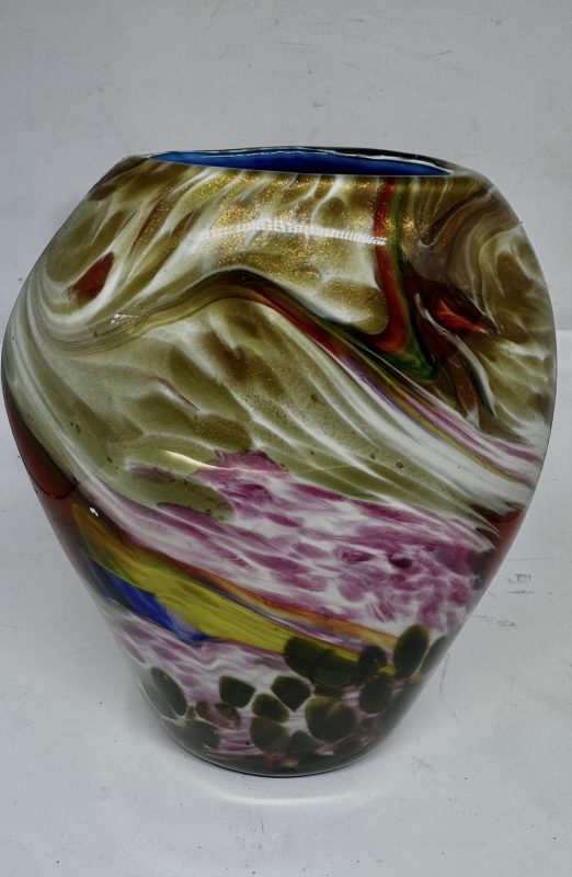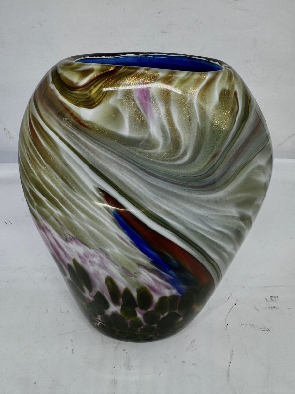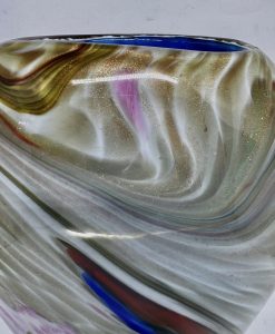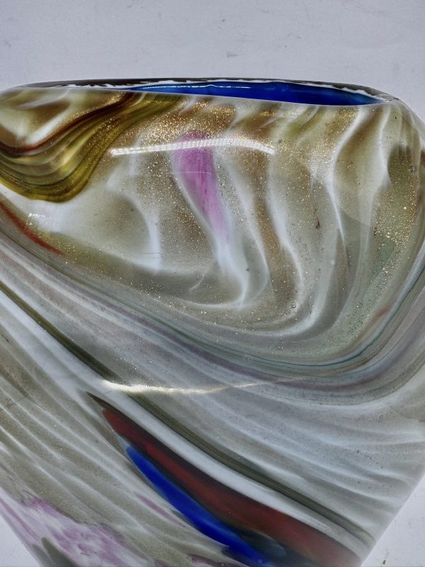 Floreiro em vidro artístico, dito Murano policromado e decorado com pó de ouro (possui bicado na base).